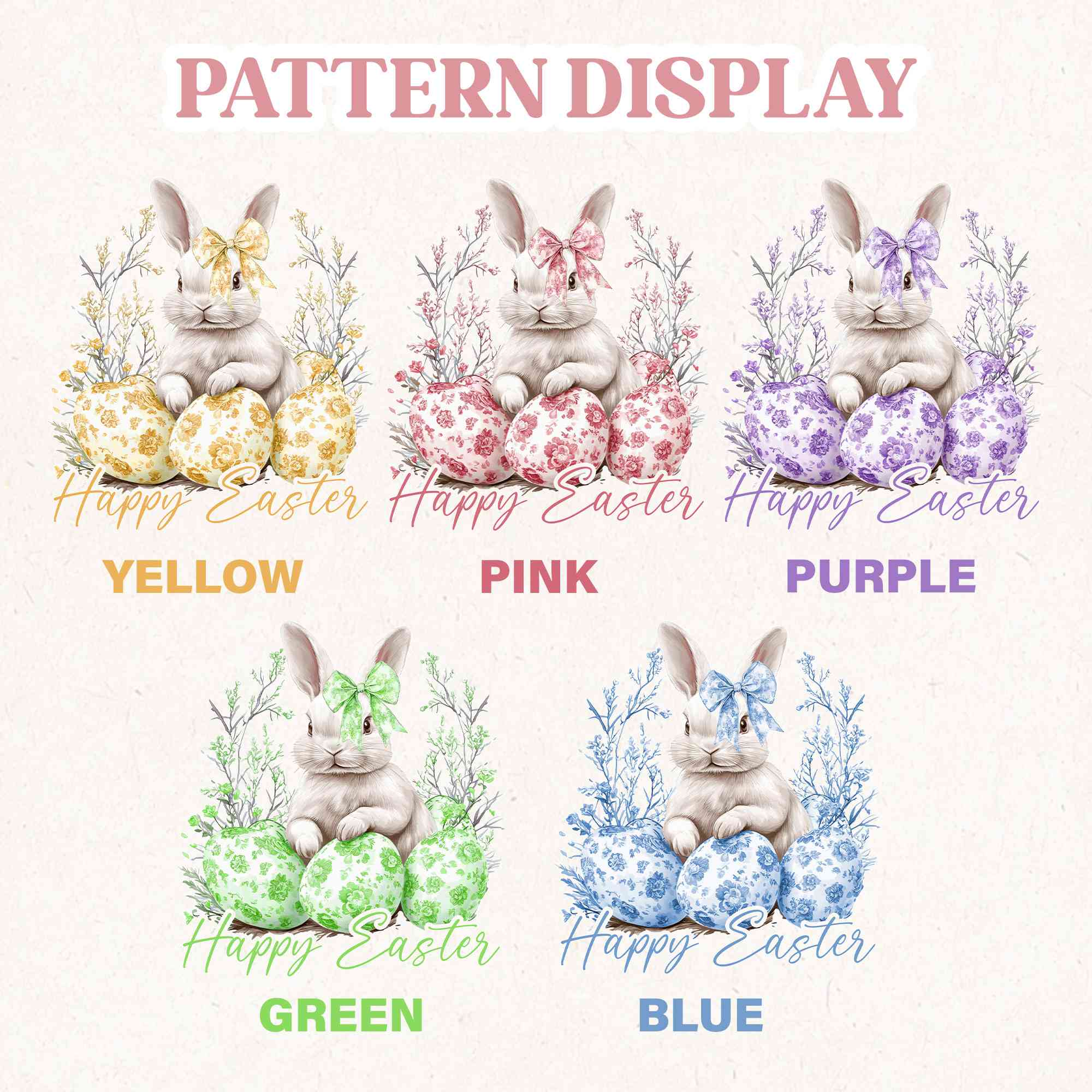 Custom Name Toile de Jouy Bow Bunny & Eggs Easter Rabbit Doll Toy